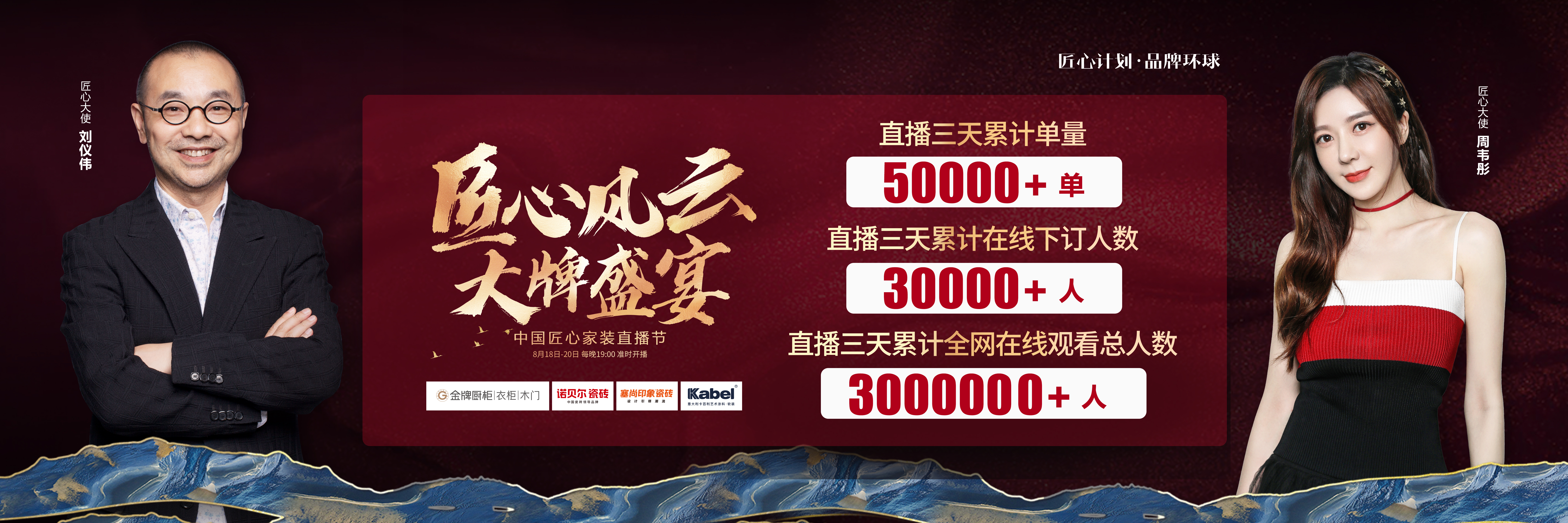 由BJL平台厨柜、诺贝尔瓷砖、塞尚印象瓷砖、卡百利艺术涂料联合缔造,创赢科技系统支持全案营销执行的“匠心风云 大牌盛宴”中国匠心家装直播节于8月20日圆满落...